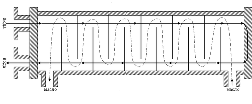 Используемые на тепловозах водомасляные теплообменники (рисунок 4.2) предназначены для охлаждения водой масла дизеля. Для реализации максимального теплосъёма в ограниченных габаритах теплообменника чаще всего применяют противоточно перекрестное течение жидкостей. Вода проходит по гладким или оребренным с внешней стороны трубкам, завальцованным в трубные доски. Масло, попадающее в теплообменник, ввиду наличия сегментных перегородок, движется поперек трубного пучка, отдавая тепло воде, движущейся по трубкам. Температурные удлинения трубок охлаждающего элемента компенсируются за счет возможности перемещения одной из трубных досок теплообменника.