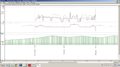 Рисунок А.3 – График тягового расчета состава массой 3700 тонн, движущегося в нечетном направлении на участке Анисимовка – Фридман с применением РТ