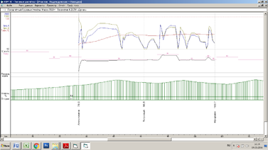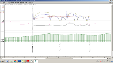 Рисунок А.1 – График тягового расчета состава массой 6300 тонн, движущегося в четном направлении на участке Анисимовка – Фридман с применением РТ