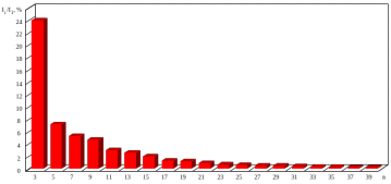 ПРОЦЕНТНОЕ СОДЕРЖАНИЕ ГАРМОНИЧЕСКИХ СОСТАВЛЯЮЩИХ ТОКА НА ТОКОПРИЁНИКЕ ЭЛЕКТРОВОЗА