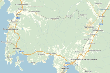на участке Смоляниново – Находка относительно крупных населенных пунктов