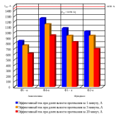 По результатам расчёта, приведенным в таблице 4.3, были построены диаграммы температуры нагрева проводов и эффективных токов контактной подвески, представленные на рисунках 4.2 и 4.3.