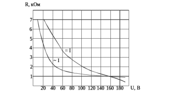 Рисунок 6.1 – Зависимость сопротивления тела человека от приложенного напряжения