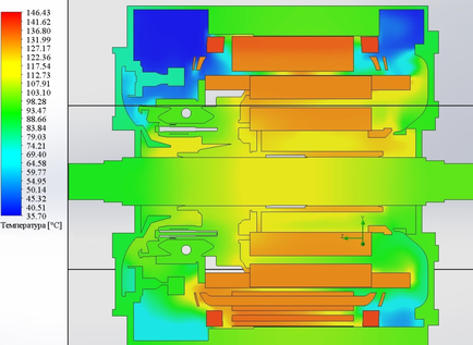 По рисунку 4.2 так же видно, что в зоне лобовых частей обмотки якоря, воздух нагревается на 8 °C меньше.