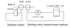 На рисунке 3.7 показана схема подключения приборов к трансформатору тока