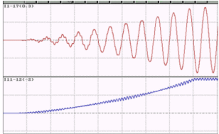 Рисунок 2 - Ток сетевой обмотки (сверху) реактора в зависимости