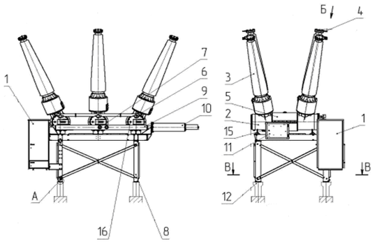 10 - механизм отключающий, 11 - шкаф вторичных coeдинений,
