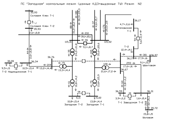 Для определения нагрузок подстанции в ОАО «ДРСК» получен расчет нормальных и аварийных режимов по ПС «Западная».