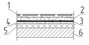 | 4. Стяжка из ЦПР М 150 по сетке 3Bp I – 100х100 - 30 мм 5. Плиты "Пеноплэкс-35" -30мм 6. Ж/б плита перекрытия | ||||