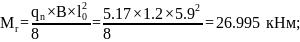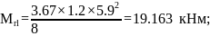 изгибающий момент от собственного веса плиты в основании консоли с учетом коэффициента динамичности