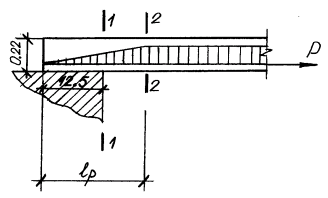 Расчет производится в сечении у грани опоры плиты (I-I) и на расстоянии длины зоны передачи напряжений в сечении (2-2) [рис. 2.8].