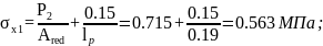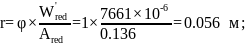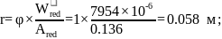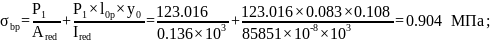Для вычисления момента силы Р1 относительно ядровой точки, наиболее удаленной от растянутой (верхней зоны) вычислим следующие величины: