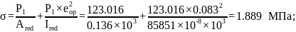 - максимальное напряжение в сжатом бетоне от внешних сил и сил предварительного напряжения: