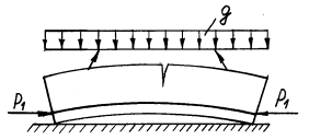 Сила обжатия Р1 (после освобождения арматуры на упорах) открывают плиту от формы и изгибают ее. При этом могут возникнуть в верхней зоне начальные трещины. Трещины не возникнут, если удовлетворится условие: