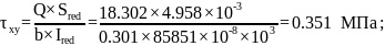 Определение касательных напряжений в бетоне от внешней нагрузки:
