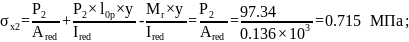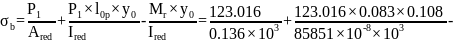 Напряжения в бетоне на уровне центра тяжести предварительно напряженной арматуры