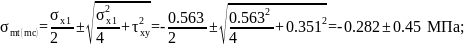 Значение главных напряжений (растягивающих mt и сжимающих mc) в бетоне: