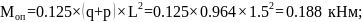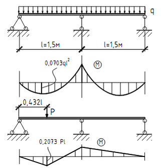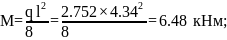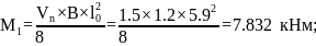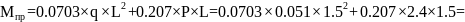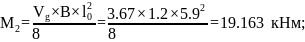 Изгибающий момент в пролёте при втором сочетании нагрузок (постоянная и временная от сосредоточенного груза 1 кН – проверка на прочность):