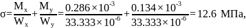 Прогон испытывает косой изгиб, поэтому напряжение определяется по формуле:
