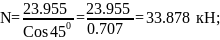 Так как подкос наклонен под углом 45°, то продольная нагрузка составит:
