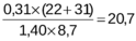 δут = [Rgf– (1/αint+ Σδ/λ+1/αext)]λут = [1,38 – (1/8,7 + 0,15/1,92 + 0,02/0,07 + 0,03/0,14 + 1/12)]∙0,031 = [1,38 – (0,11 + 0,08 + 0,28 + 0,21 + 0,08)]∙0,031 = (1,38 – 0,76)∙0,031 = 0,019м