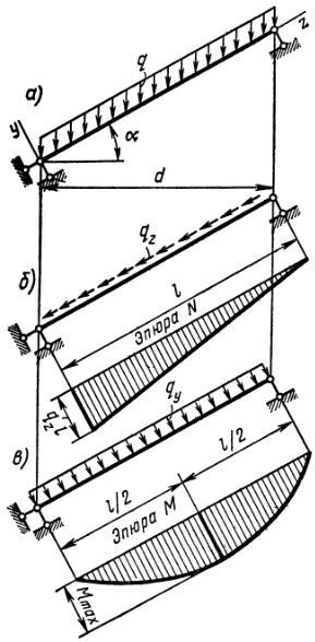 qz = q·sinα = 6,64·0,496 = 3,29 кН/м.
