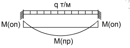 При учете образования пластического шарнира изгибающий момент в пролете и на опоре определяют по формуле, учитывающей выравнивание моментов