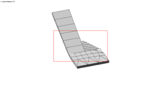 Лестницы моделировались конечными стержневыми элементами (КЭ №10) и элементами оболочками (КЭ №41). Косоуры лестниц моделировались стержневыми конечными элементами из швеллеров. Лестничный марш моделировался по приведённой толщине ступеней. Модель лестничного марша показана на рисунке 16.