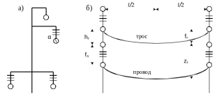 Рисунок 7.1 – Расположение и подвес троса: а) на опоре, б) схема подвеса