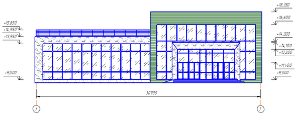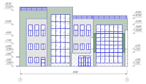 Должен быть разработан и представлен один наиболее выразительный (главный) фасад здания, отражающий назначение здания, его тектонику и объёмно-планировочное решение.