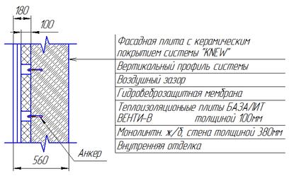 В проекте предлагается применить навесной вентилируемый фасад фирмы «KMEW» (Япония). В отделке применяются панели трех цветов: СА 1891 С, СА 1259 С, СА 1251 С. Он являются по своим физико-строительным параметрам наиболее эффективной, многослойной системой, имеющей ветровой и дождевой барьер. При правильном монтаже такие конструкции обеспечивают долговременную функциональную надежность зданий.