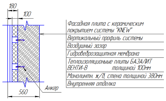 Рисунок 1.6 Вертикальный разрез вентилируемого фасада