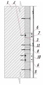 1 – стена; 2 – анкер; 3 – паронитовая прокладка; 5 – утеплитель;