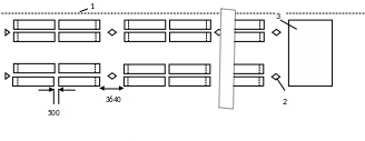 Рис. 5.1. Компоновка основных элементов контейнерной площадки при перегрузке рефрижераторных контейнеров: 1 – железнодорожный путь; 2 – риферный пьедестал для размещения блоков электропитания КРК; 3 – участок ремонта контейнеров.