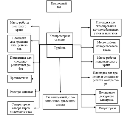 Функциональные требования к модулю 4- газовая компрессорная установка, заключаются в том, чтобы здание наиболее полно удовлетворяло своему назначению, т.е. заданным параметрам размещаемого в нем технологического процесса. Главным технологическим оборудованием в здании является газовая турбина. Для работы газовой турбины необходимо предварительное сжатие природного газа при помощи компрессора. Природный газ поступают в компрессорную из скважин хранения по магистральному газопроводу. Сжатие газа, транспортируемого по магистральным газопроводам, осуществляется на компрессорной станции, оборудованных центробежным компрессором. Через входной кран газ из магистрального газопровода, пройдя через пылеуловители и маслоуловители, поступает на вход рабочих центробежных нагнетателей. После двухступенчатого сжатия и очистки газ через обратные клапаны и краны направляется в магистральный газопровод [24].