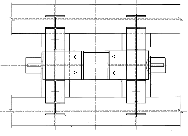 Колонны в проектируемом здании запроектированы по серии 1.450.3-7.94 в виде сплошностенчатыми колоннами прямоугольного трубчатого сечения 400х150 мм. Марка стали для колонн и ригелей - С255 по ГОСТ 27772-88*, прогоны перекрытий - из швеллеров по ГОСТ 8240-97 - сталь С255. Данные колонны применяются при строительстве производственных зданий до 25 м в районах с расчетной температурой выше минус 65°С, относящихся к I-V снеговым и I-V ветровым районам используют типовые стальные сплошностенчатые колонны типа КХ из гнутосварных профилей. Колонны используют при возведении зданий в районах с расчетной сейсмичностью до 9 баллов. Колонны опираются на главную балку, с помощью траверсы, опирающиеся на сваи.
