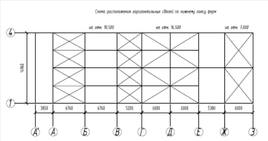Рисунок 1.3 Схема расположения горизонтальных связей по нижнему поясу ферм