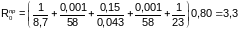R3=δ/λ термическое сопротивление третьего слоя ограждающей конструкции: оцинкованный лист, δ=0,001 м толщина слоя, λ=58 Вт/(м ×°С) коэффициент теплопроводности.