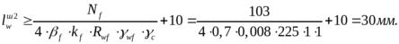 Определим длину шва из условия среза по металлу шва при сварке электродами 350А при Rwf=225 МПа согласно формуле (2.73):