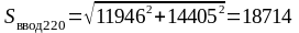– полная мощность на вводах 220кВ соответственно, кВА.