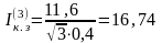 Получаем ток короткого двухфазного замыкания, кА