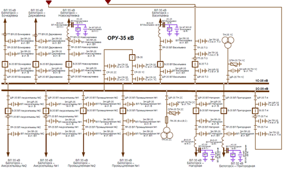 - ОРУ 35кВ – по схеме «Одна рабочая секционированная выключателем система шин»;