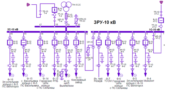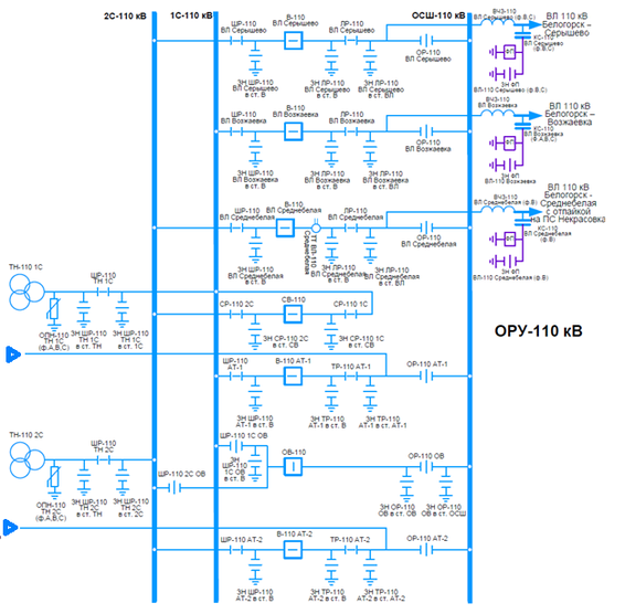 Тип распределительного устройства (конструктивное исполнение распределительных устройств (ОРУ, ЗРУ, КРУЭ)) - ОРУ-220, ОРУ-110, ОРУ-35, ЗРУ-10.