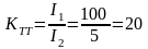 , согласно значению этого тока, выберем коэффициент трансформации для данного трансформатора тока, ближайшее значение из ряда номинальных первичных токов равно 100 А, а следовательно коэффициент трансформации будет равен: