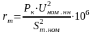 где rнп – активное сопротивление нулевой шины, принимается равной rш, мОм.
