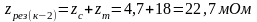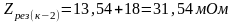 Результирующие сопротивление до точки К-2: