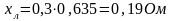 где худ – удельное индуктивное сопротивление линии 10 кВ, равно 0,3 Ом/км [4]; L – длина воздушной линии, равно 635 м.