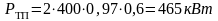 где n – количество трансформаторов, равно 2шт.; SТр – полная мощность трансформатора, равно 400 кВА; средневзвешенный коэффициент мощности, равен 0,97; kз - коэффициент загрузки трансформаторов, равен 0,6.
