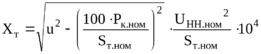 где Рк.ном – потери кз в трансформаторе, кВт; UННном –номинальное напряжение обмотки низшего напряжения трансформатора, кВ; Sm.ном – номинальная мощность трансформатора, кВ·А; uк – напряжение кз трансформатора, %.