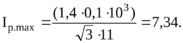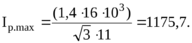 По формуле (3.4) рассчитаем максимальный рабочий ток фидеров рабочего напряжения 10 кВ и результат сведем в таблицу 3.2